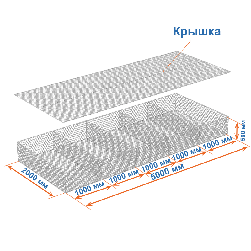 Габион матрац ГСИ-М 5х2х0,5 оцинкованный, Ø проволоки 2,4 мм, размер ячейки 6х8 см