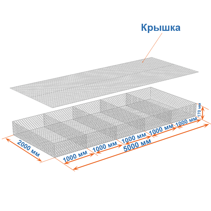 Габион матрац ГСИ-М 5х2х0,17 оцинкованный / ЦП, Ø проволоки 2,7/3,7 мм, размер ячейки 8х10 см