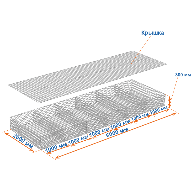 Габион матрац ГСИ-М 6х2х0,3 оцинкованный, Ø проволоки 2,7 мм, размер ячейки 8х10 см